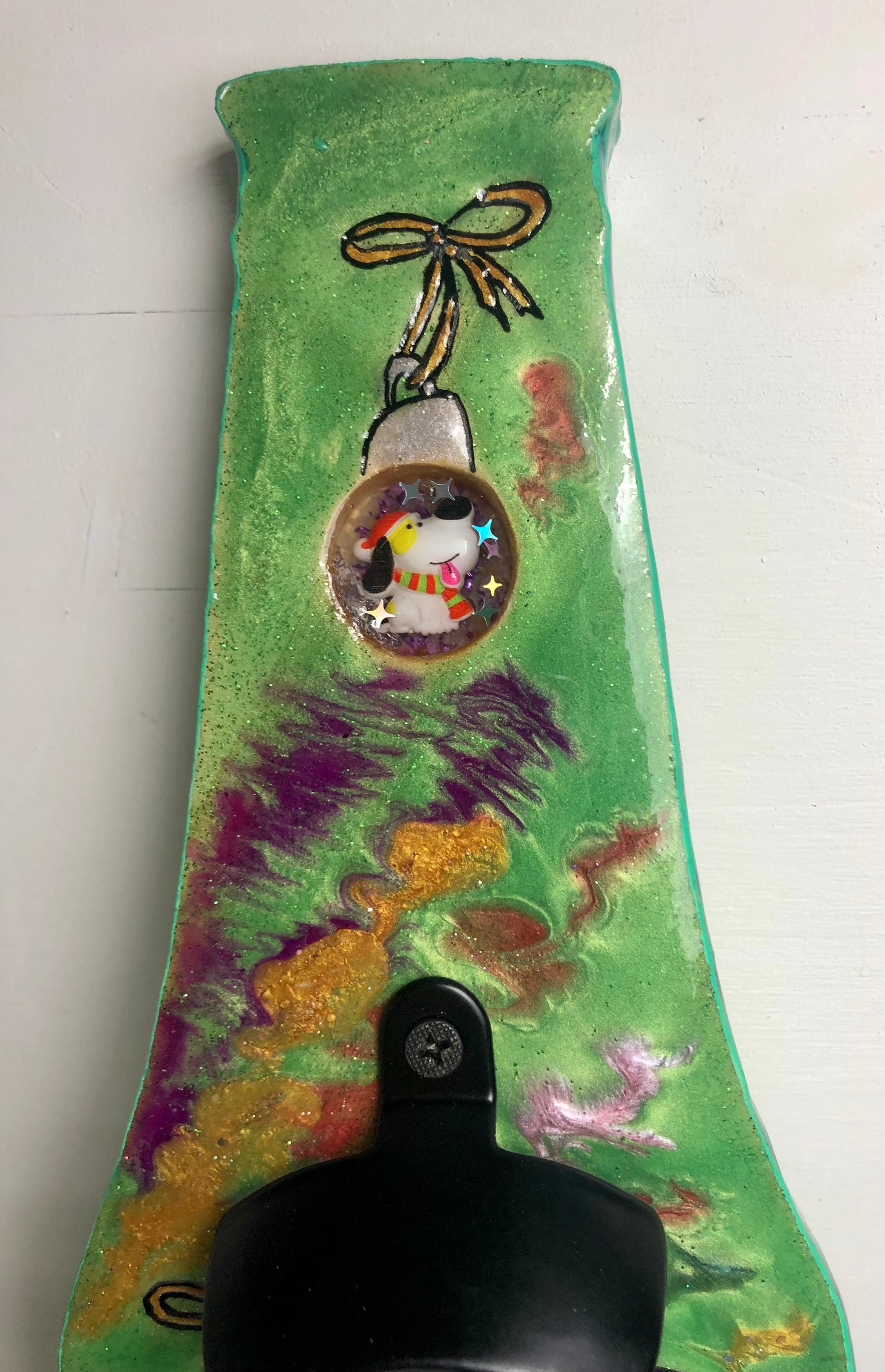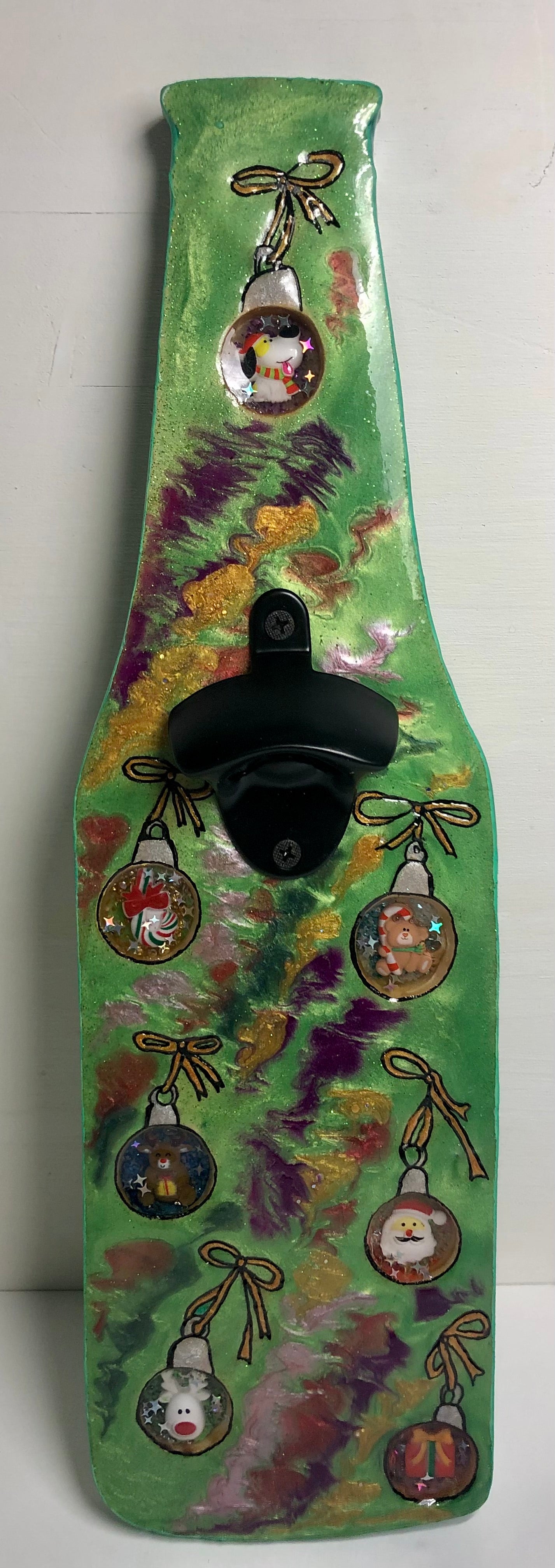 Décapsuleur mural en bois. Décoration « Noel » en résine. Très colorée, idéal cadeau de fin d’année!
