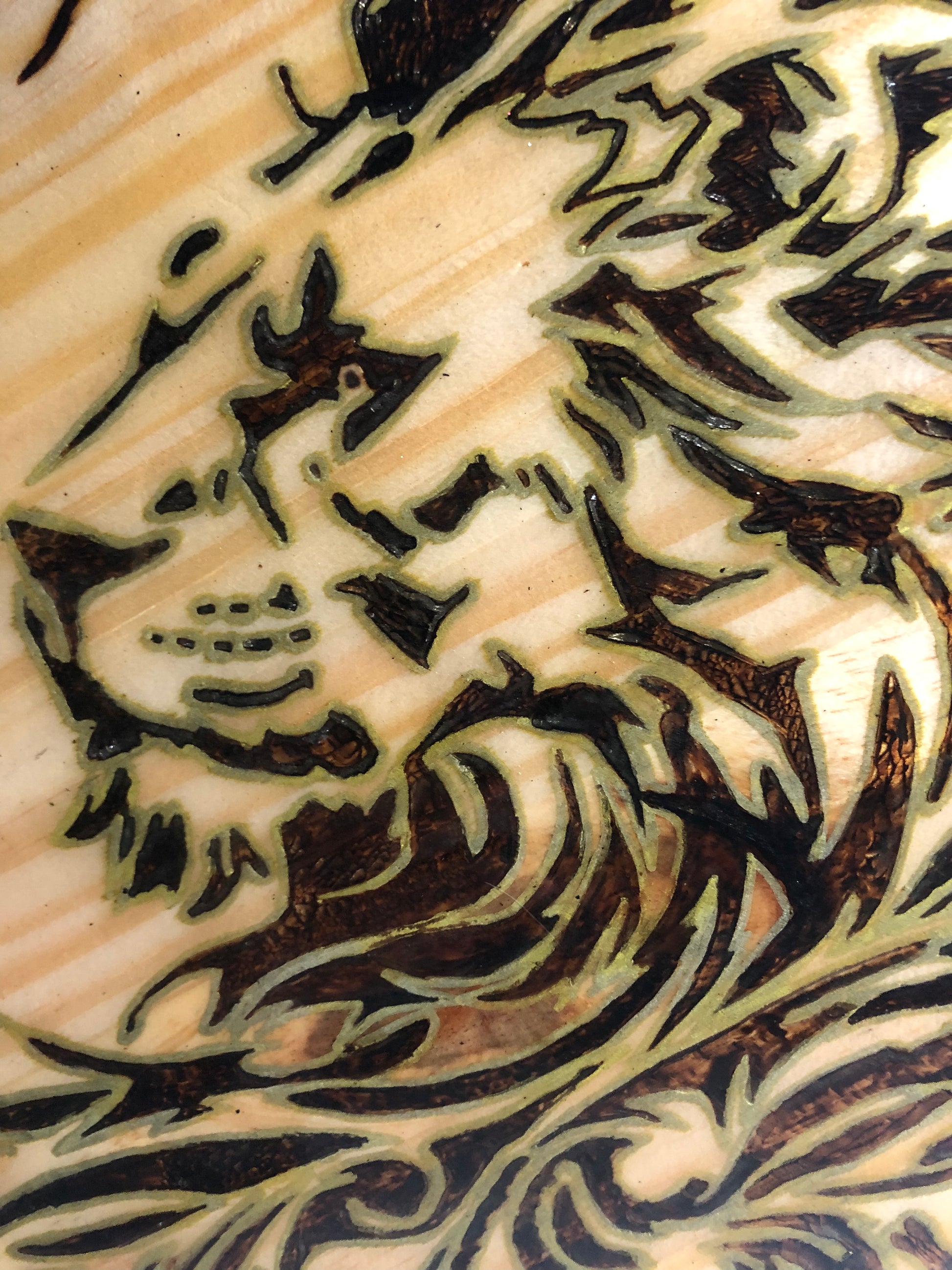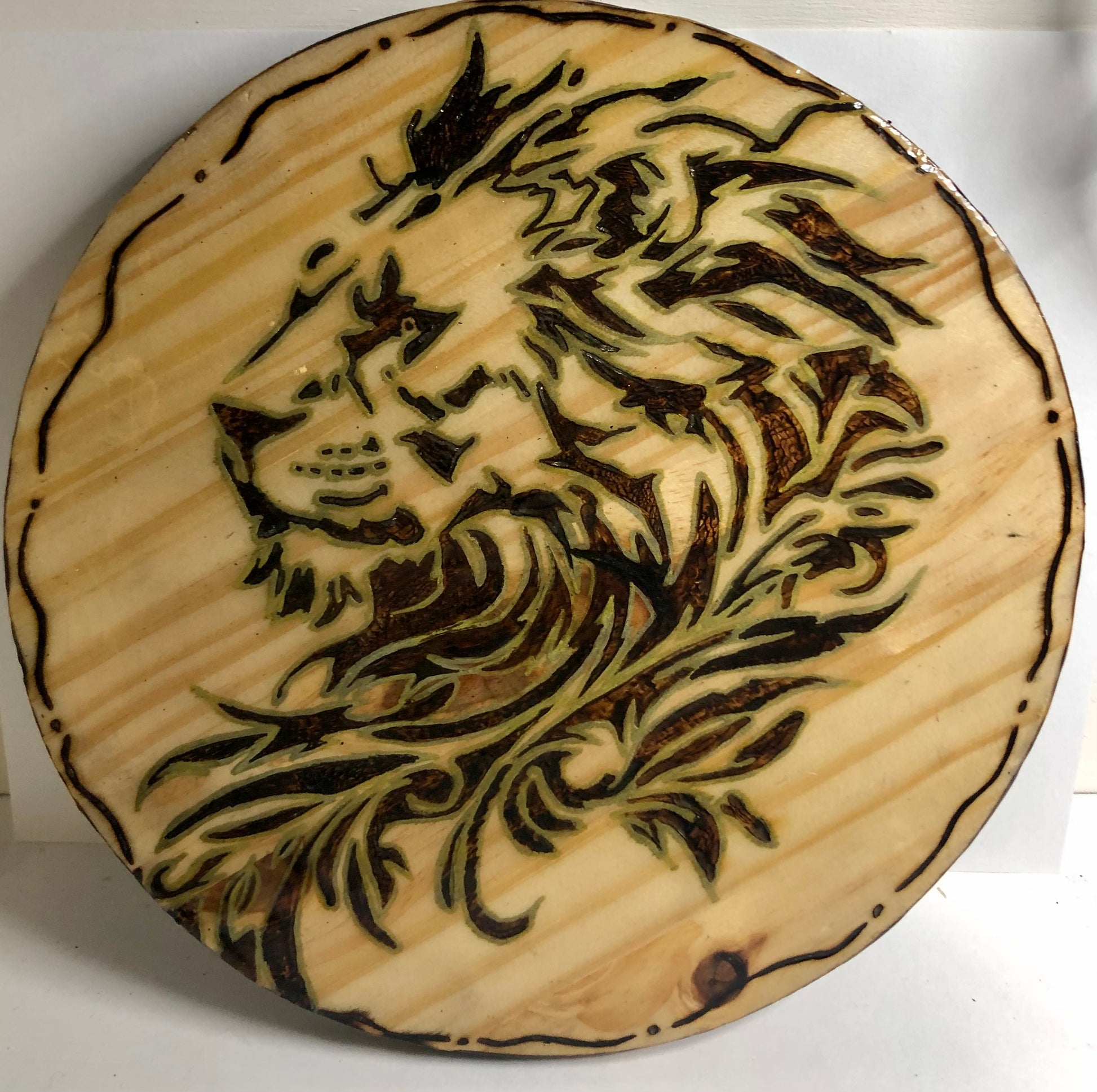 Transformez votre cuisine en un espace chaleureux et accueillant avec ce dessous de plat en bois. Il est unique et orné d'un lion stylisé en pyrogravure qui ajoutera une touche d'élégance à toutes vos tables ou plans de travail