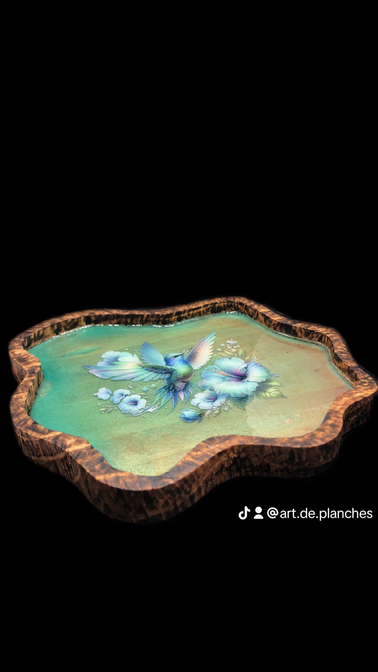 Transformez votre espace avec ces plateaux en bois et résine entièrement fait main! Leur design unique et coloré apporte une touche d'élégance tout en étant fonctionnel. Parfait pour accueillir vos apéritifs ou comme pièce décorative, il me captiveront le regard à chaque utilisation. Offrez-vous ces beautés artisanales!