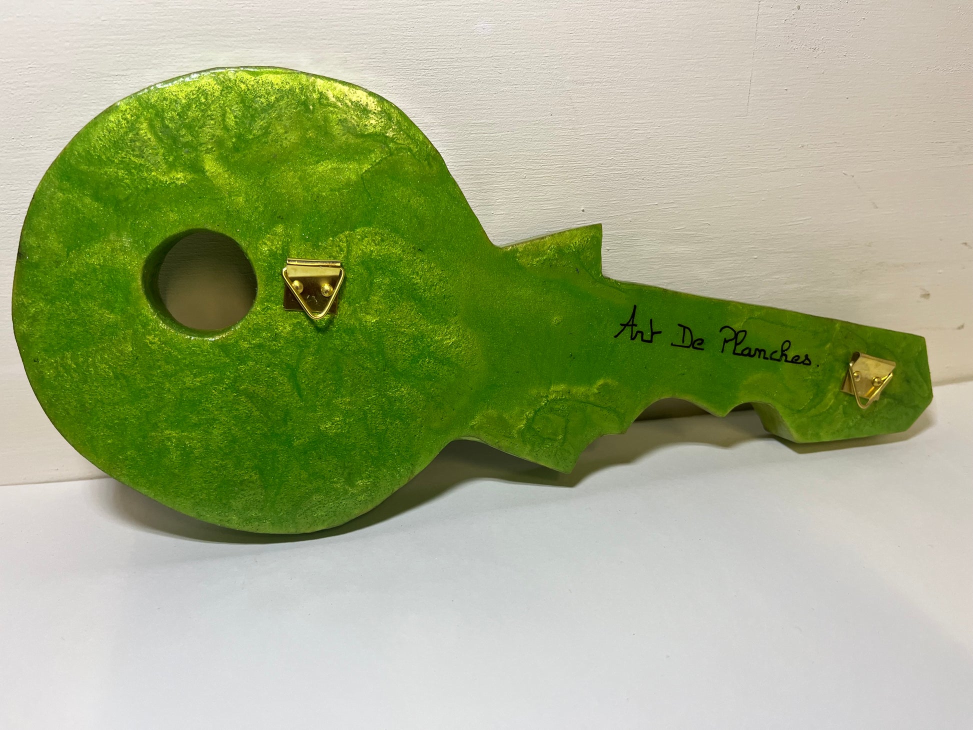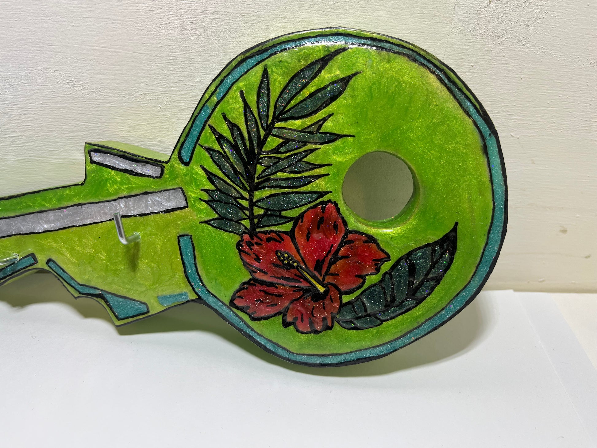 Support en bois, décoration en résine, 3 crochets. Finition Phosphorescent