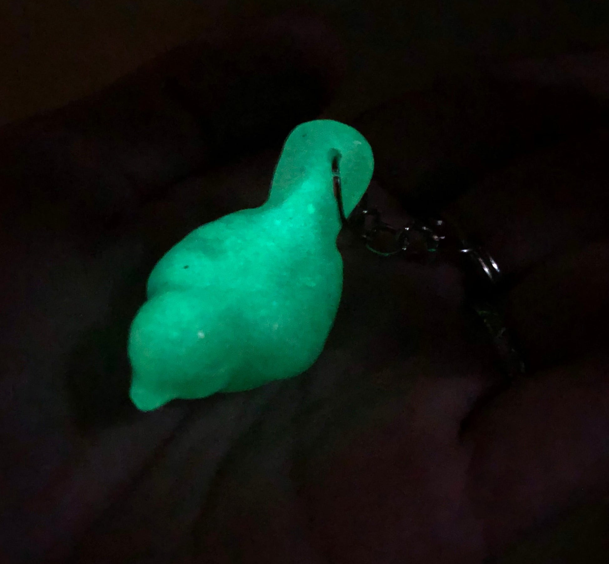 Porte clé oiseau en résine. Vert kaki phosphorescent