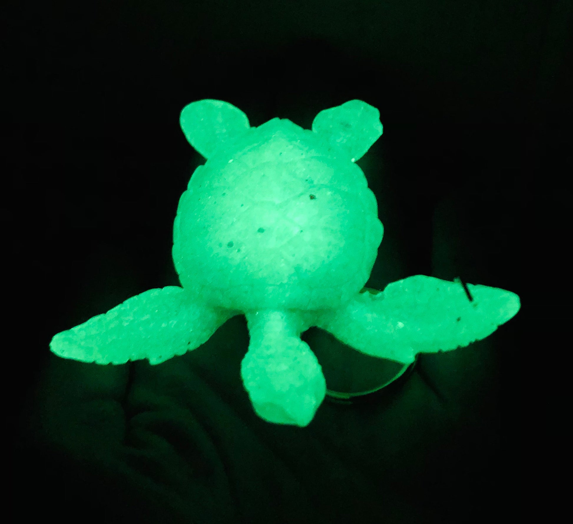Porte clé tortue en résine. Couleur vert phosphorescent