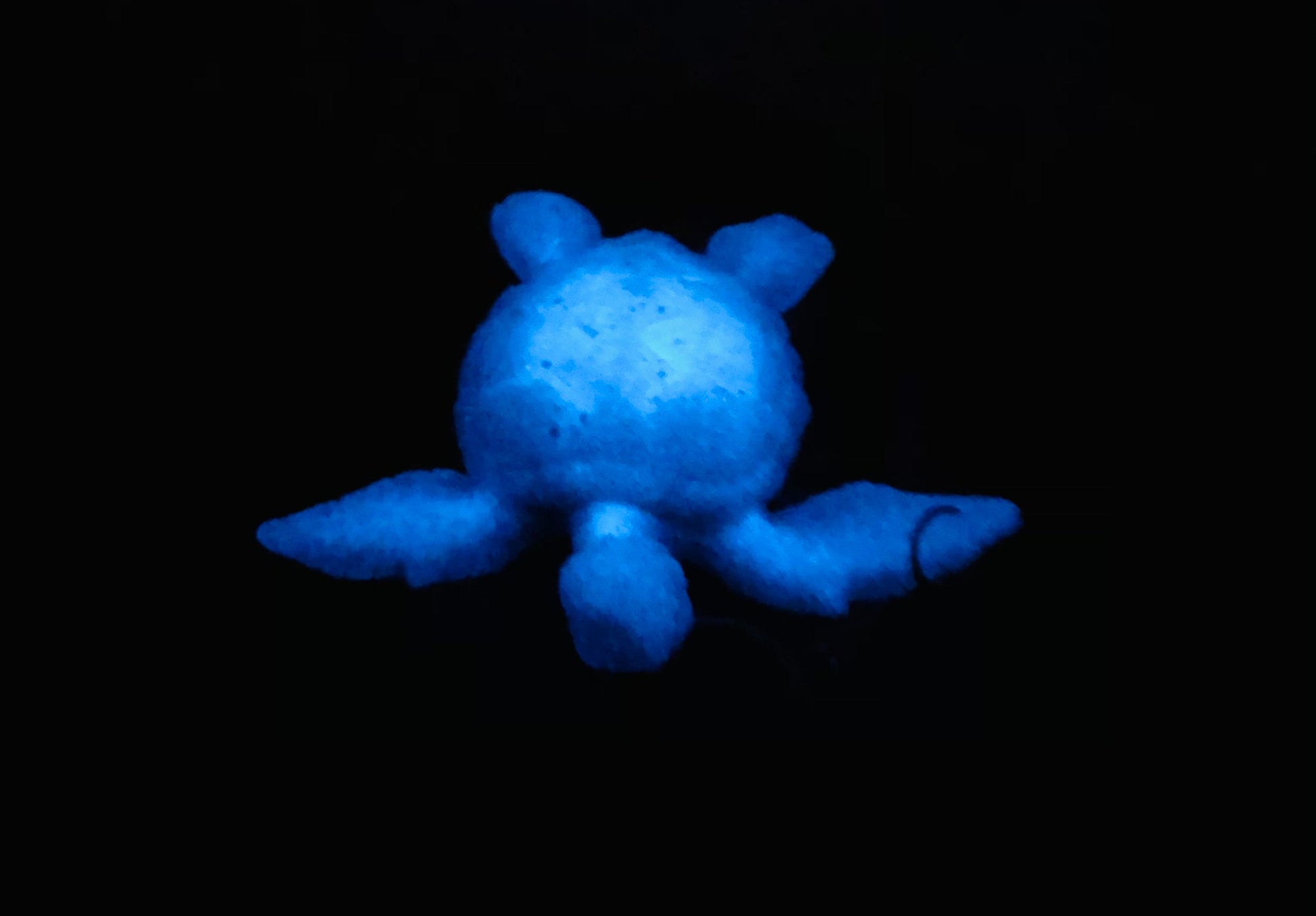 Porte clé tortue en résine. Couleur vieux rose à paillettes phosphorescent