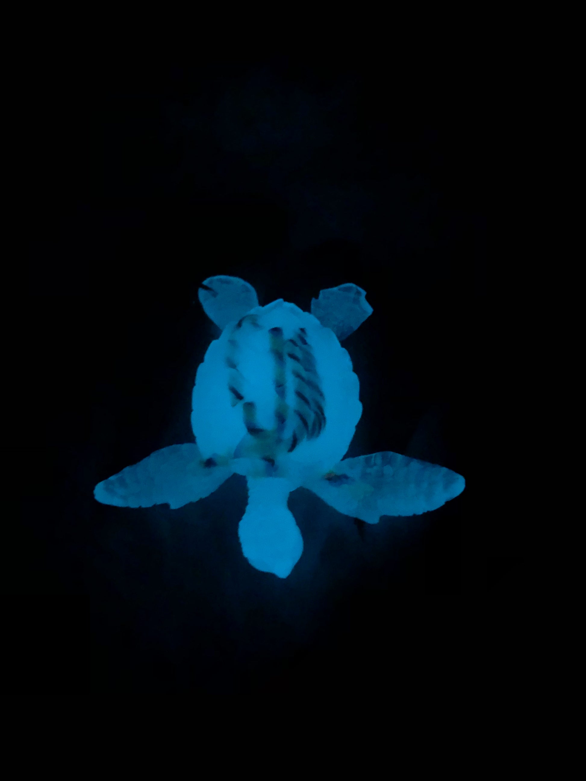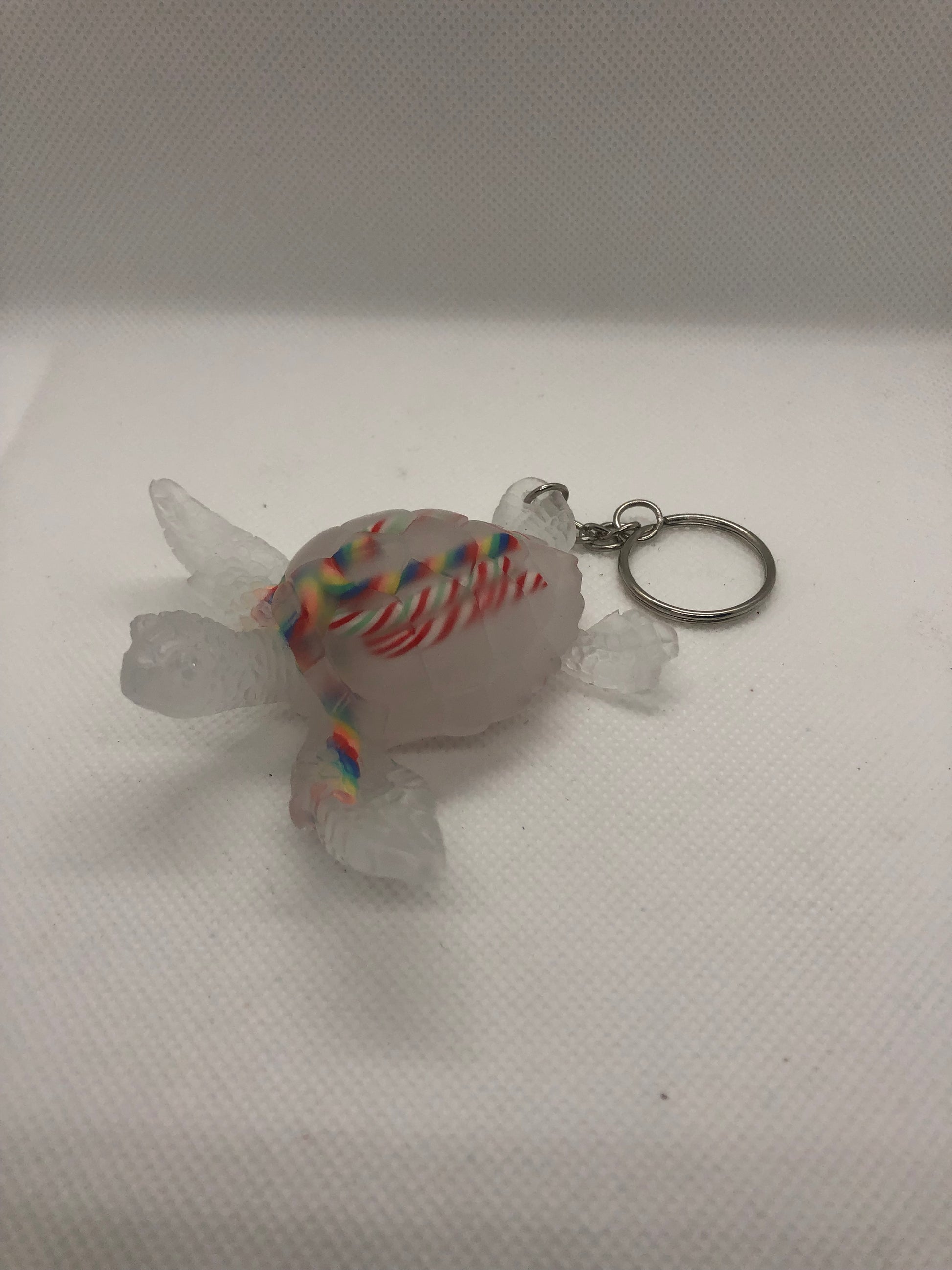 Porte clé tortue en résine. transparent phosphorescent avec cannes à sucre intégrées