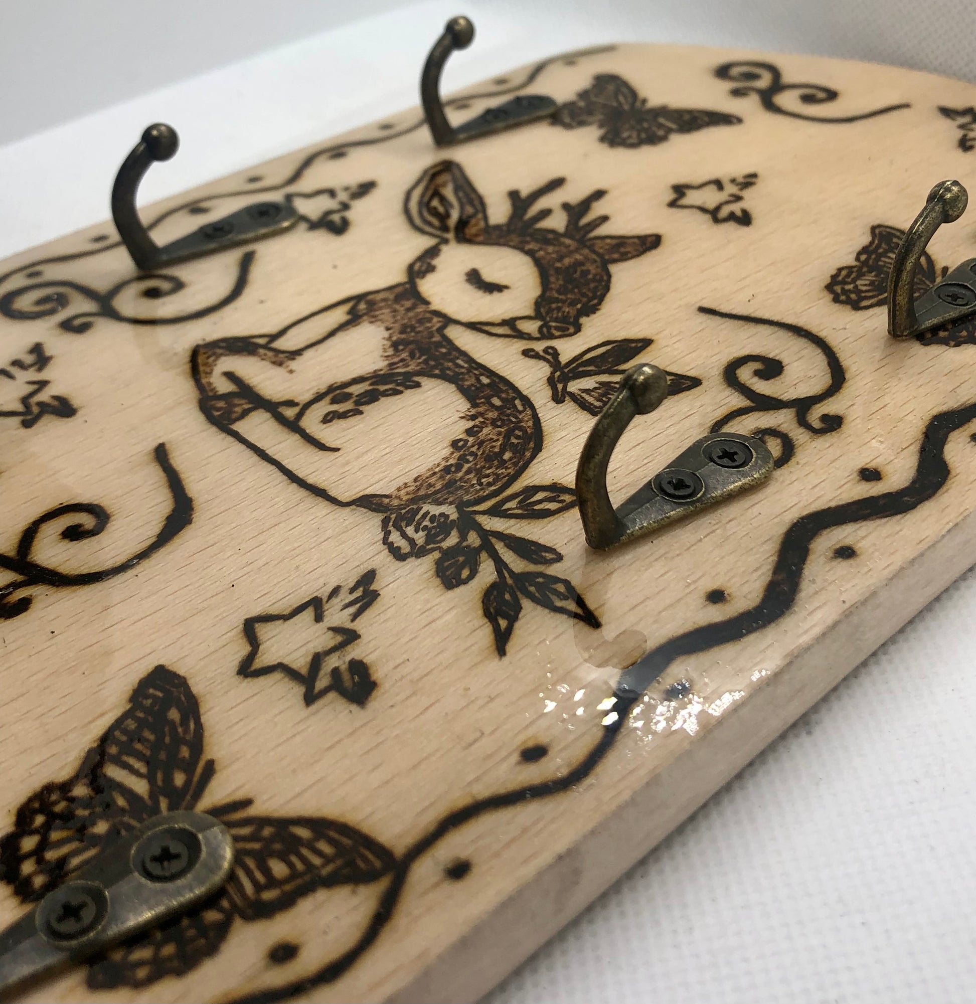 Ce porte-clés en pyrogravure est le choix parfait pour tous les amoureux de la nature. Avec son support pour clés illustrant un magnifique phaon et des papillons, il ajoutera une touche de douceur et de beauté à votre quotidien. Un accessoire pratique et élégant.