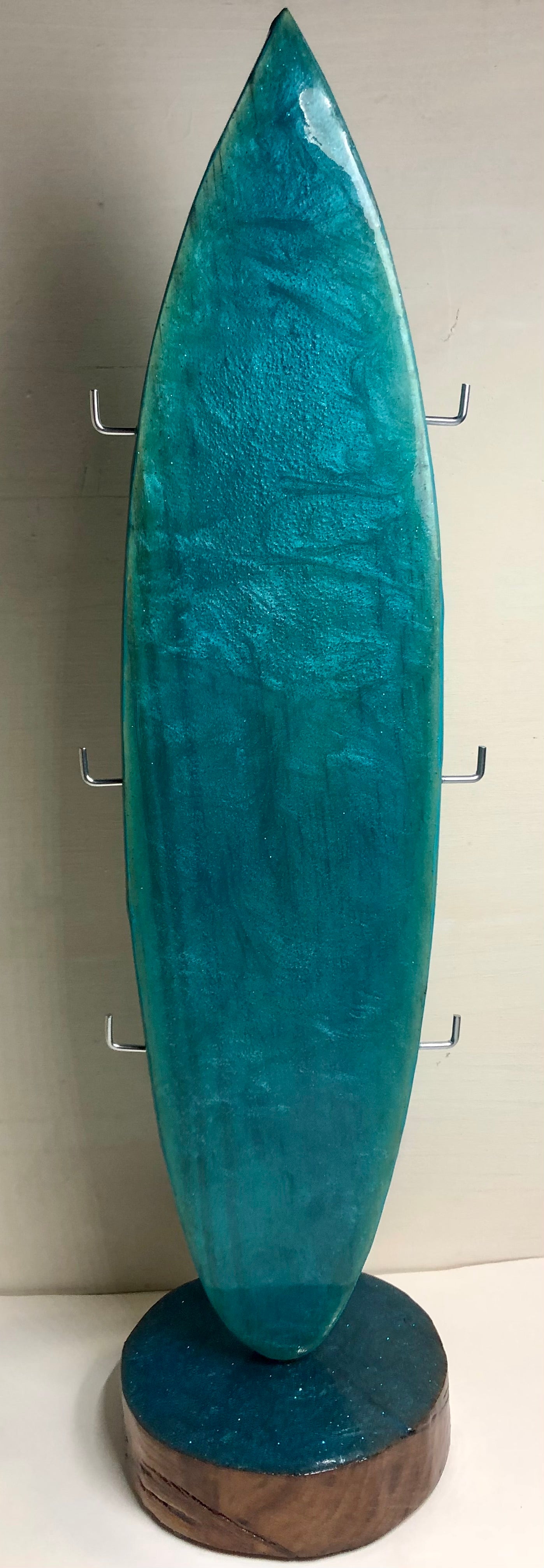 Porte clés sur pied, dragon. Socle en bois de chêne. Décor en résine