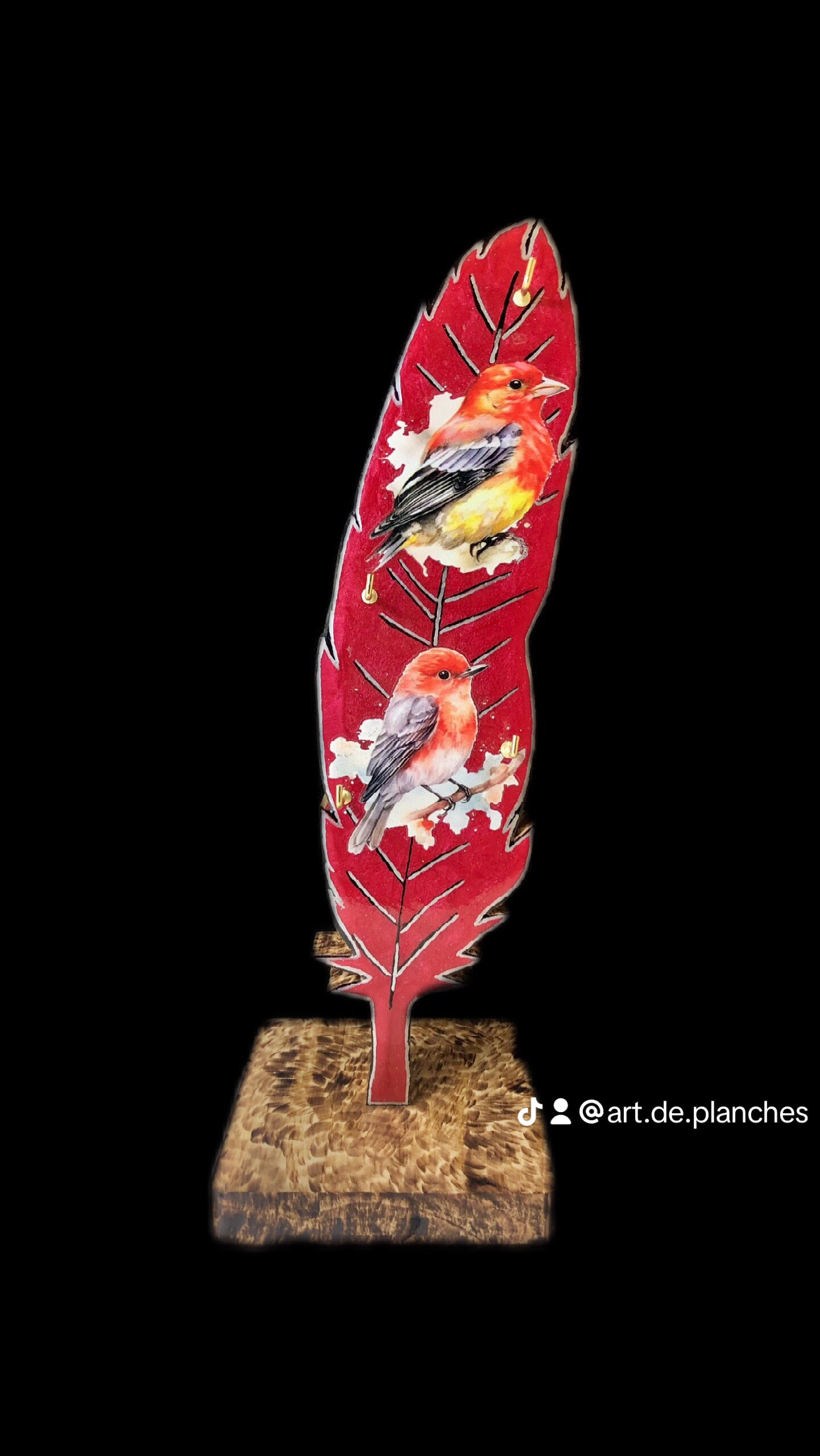 Découvrez ces superbes porte clés en forme de plume, sur support en bois. Mettez une touche d’originalité à votre intérieur. Plusieurs couleurs disponibles pour un peu de gaieté. Les décorations sont en résine colorée.